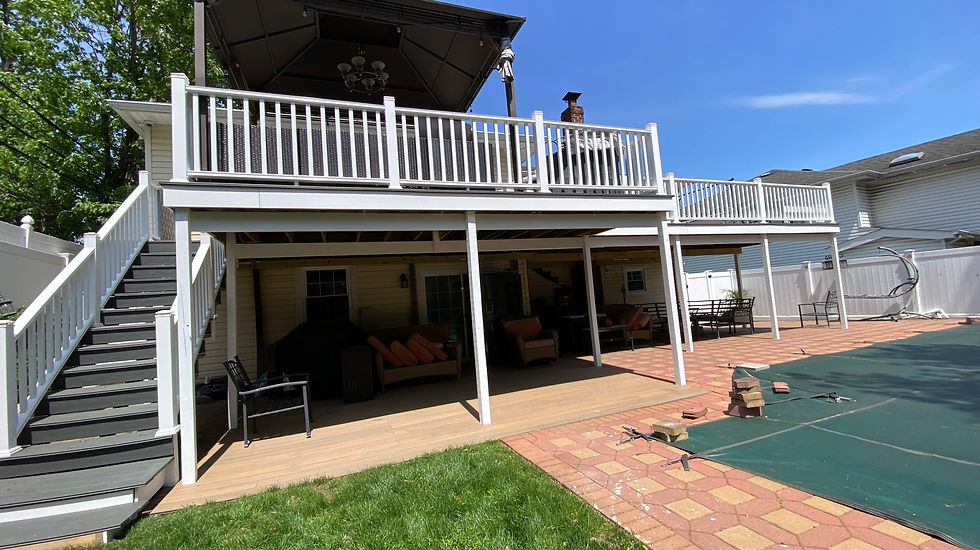 The client out on Long Island wanted to match the wooden understructure of his deck to the vinyl railing on top.
